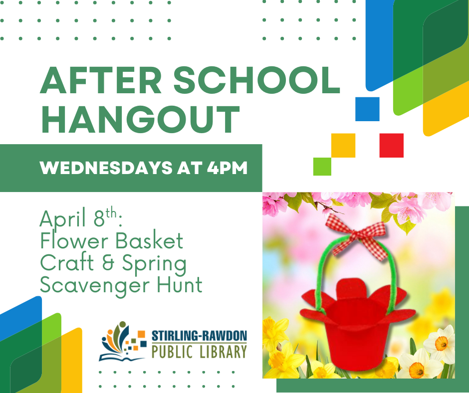 Spring is in the air and this week we’re having a spring themed scavenger hunt and making a flower basket craft! Join us April 8th at 4pm. No registration required. Recommended for ages 5 and up.