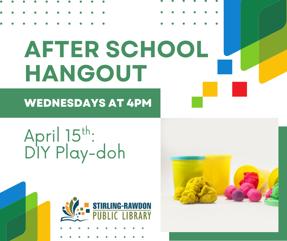 Learn how to make your own play-doh by following a simple recipe. April 15th at 4pm. No registration required. Recommended for ages 5 and up.