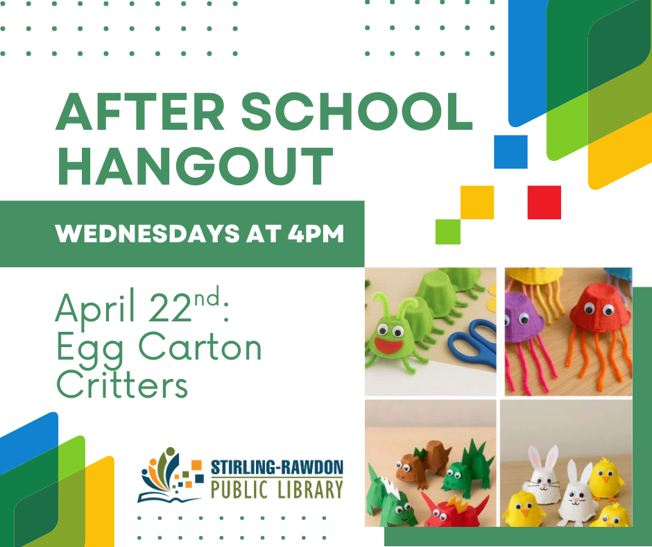 We’re upcycling egg cartons into critters this week after school! No registration required. Recommended for ages 5 and up.