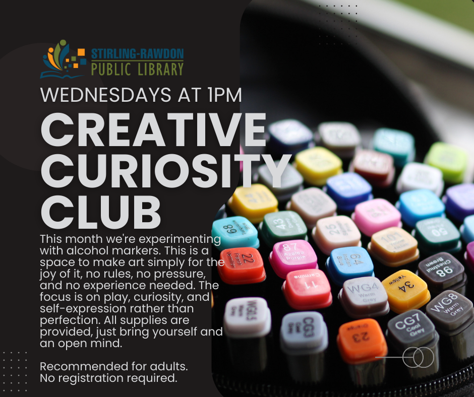 If you like to be creative with art join us on Wednesdays at 1pm. This month we’re experimenting with alcohol markers. This is a space to make art simply for the joy of it, no rules, no pressure, and no experience needed. The focus is on play, curiosity, and self-expression rather than perfection. All supplies are provided, just bring yourself and an open mind.