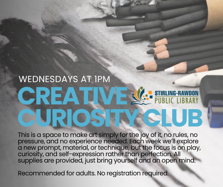 Recommended for adults. No registration required. Everyone welcome. For the month of January we are exploring charcoal.