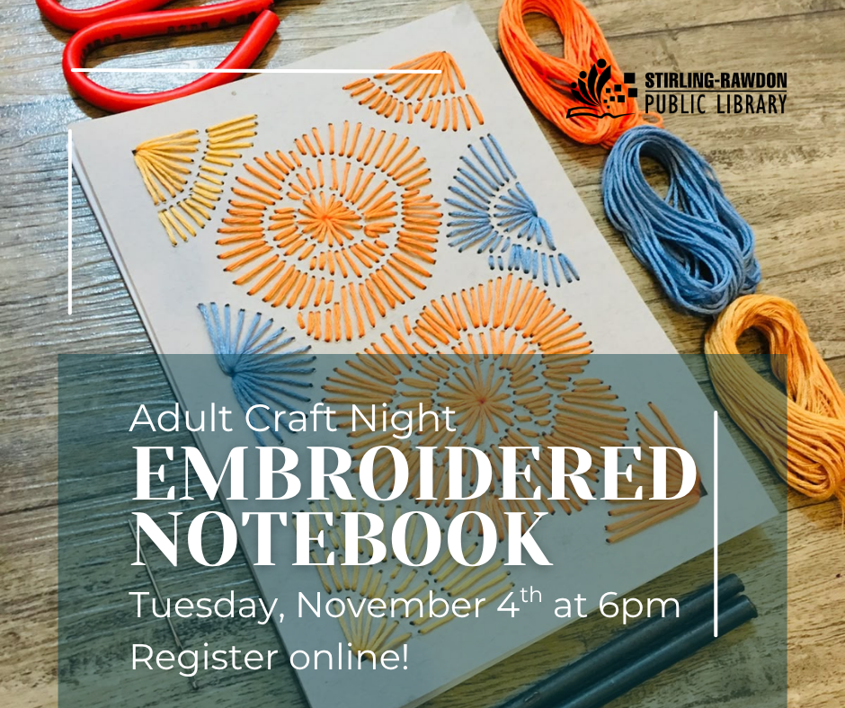 Embroidered Notebook: Adult Craft Night – Tuesday, November 4th at 6pm