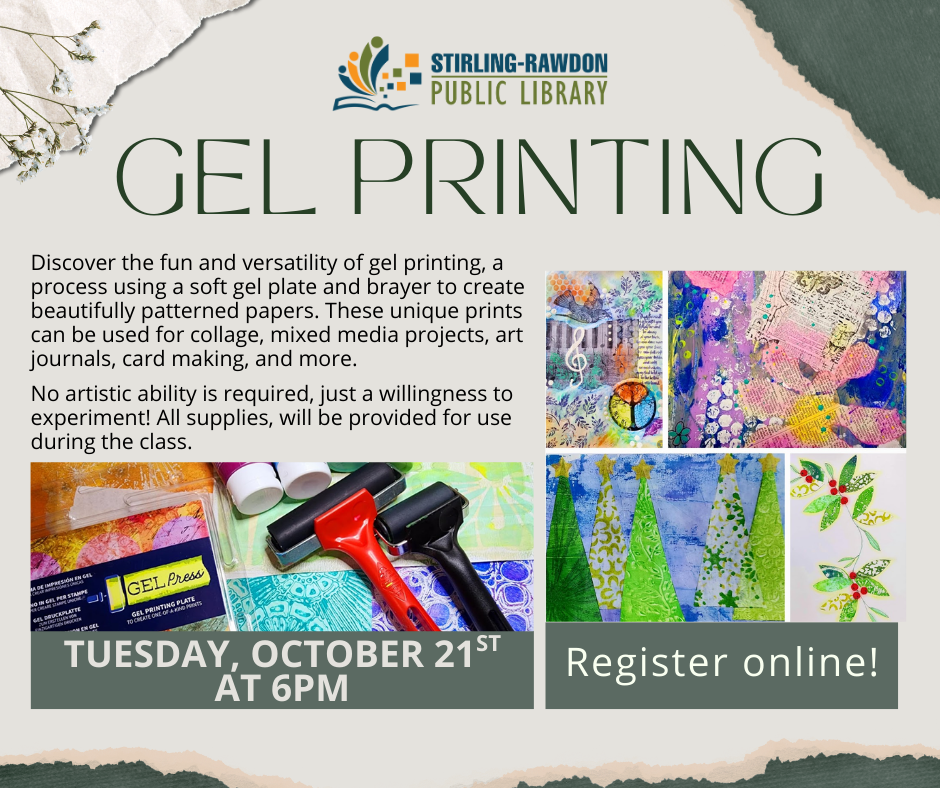 All supplies, including gel plates, brayers, paint, and paper, will be provided for use during the class. Space is limited to 10 participants, so reserve your spot early!