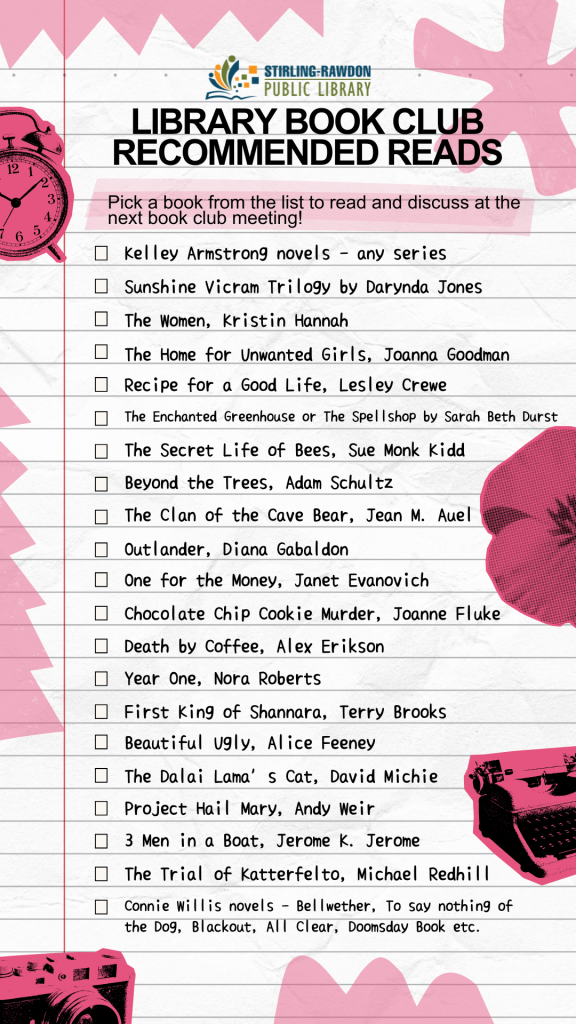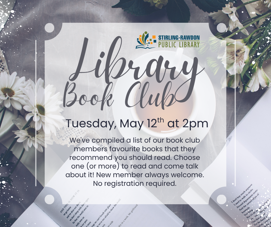 This month our theme is recommended reads! We’ve compiled a list of our book club members favourite books that they recommend you should read. Choose one (or more) to read and come talk about it! New member always welcome. No registration required.