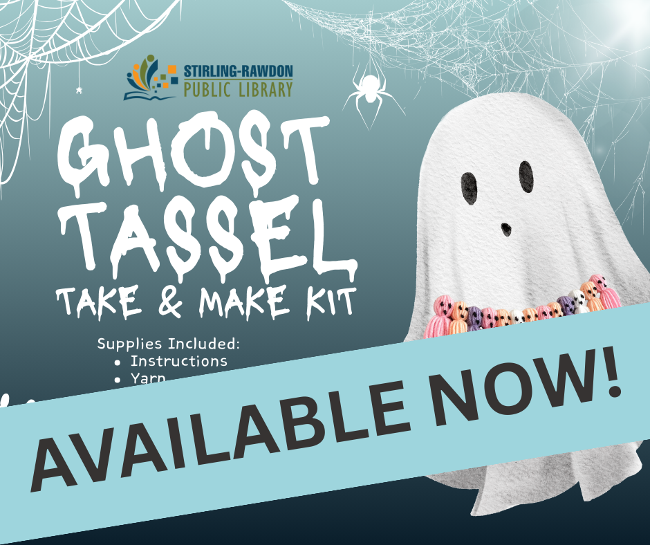 Drop into the children’s department to pick up October’s Take & Make Kit while supplies last! Each kit contains the supplies needed to make several ghost tassels, all you need to provide are scissors and glue!