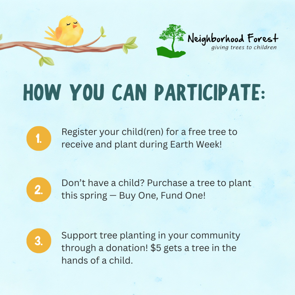We are partnering with @NeighborhoodForest to give children in our community a free tree to plant at home during Earth Week!